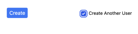 “Create Another User” from this screen will enable you to quickly create another user after pressing the Create button: