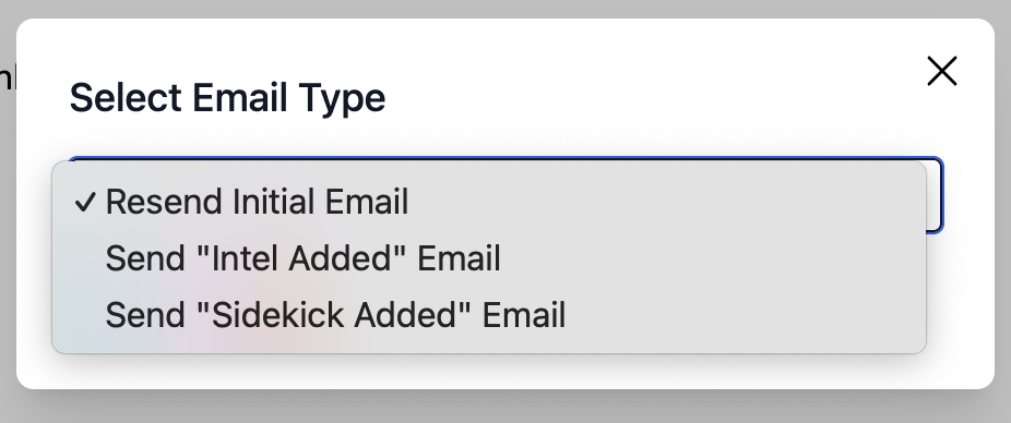 Select which type of email you'd like to send this User: