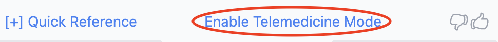 - Enable Telemedicine: At the bottom of the Audio tab, click the "enable telemedicine" link (shown below). A pop-up window with instructions will appear. After reviewing them, click the blue "Enable Telemedicine Mode" button (shown below).