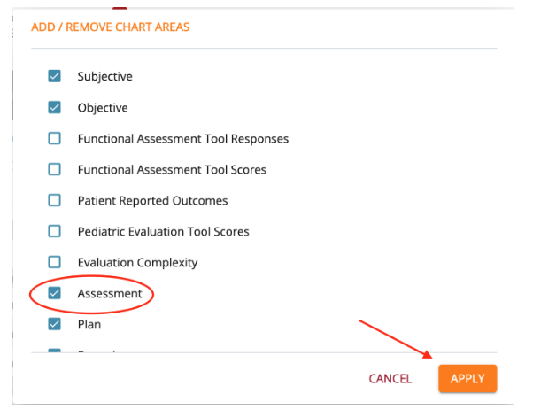 Below is a chart of the fields that Auto-Note will populate to within your note templates. We recommend ensuring that your template includes all fields below in order to successfully use the Auto-Insert function within Sidekick. If you are not seeing the option to Auto-Insert your Assessment suggestions, please make sure you have added the sections below.