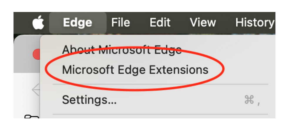 - Click “Edge” → “Microsoft Edge Extensions”