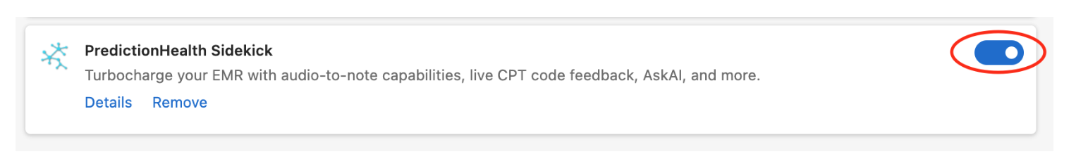 - Navigate to the Sidekick extension and switch the toggle to the “on” position: