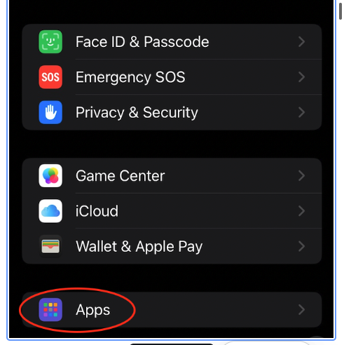Once in Settings, in the left hand menu scroll down until you see “Apps” and click into it.