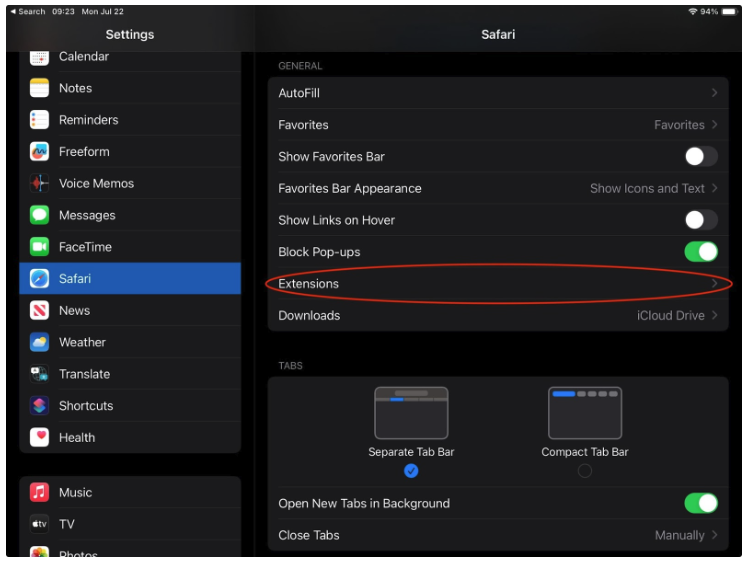Before the extension is fully functional, you must first restart Safari. Navigate to your App Switcher screen. On older devices this can be accessed by double tapping the home button. On newer devices, swipe up from the bottom to the middle of your screen and hold until you see the App Switcher appear. Then swipe left or right until you find Safari. Swipe up on Safari to close the app.