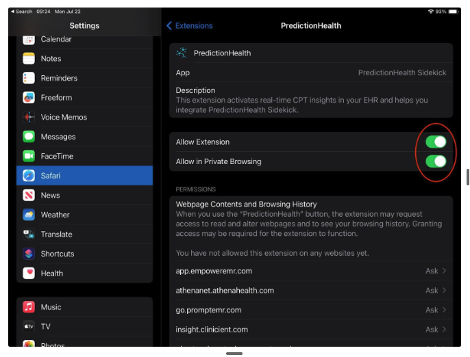 Sidekick now features a mobile (iOS) compatible version of our Sidekick extension that works in Safari. Sidekick can be run on an iPad (recommended) or an iPhone. You can download the extension on the app store here. If using Prompt as your EMR, you do not need to download an extension, you will have access to the native version of Sidekick. You can find more details on how to get started with native Sidekick here.